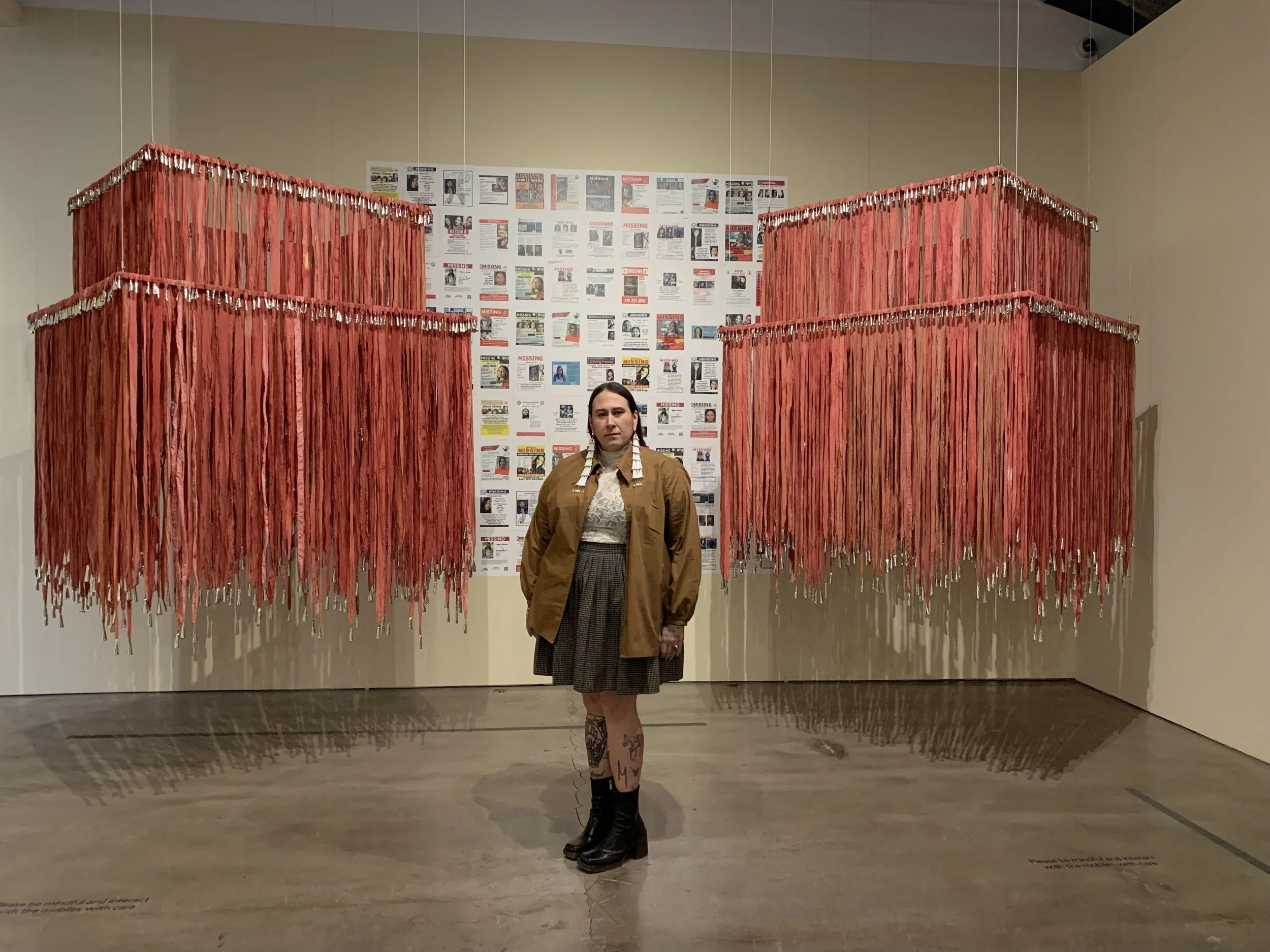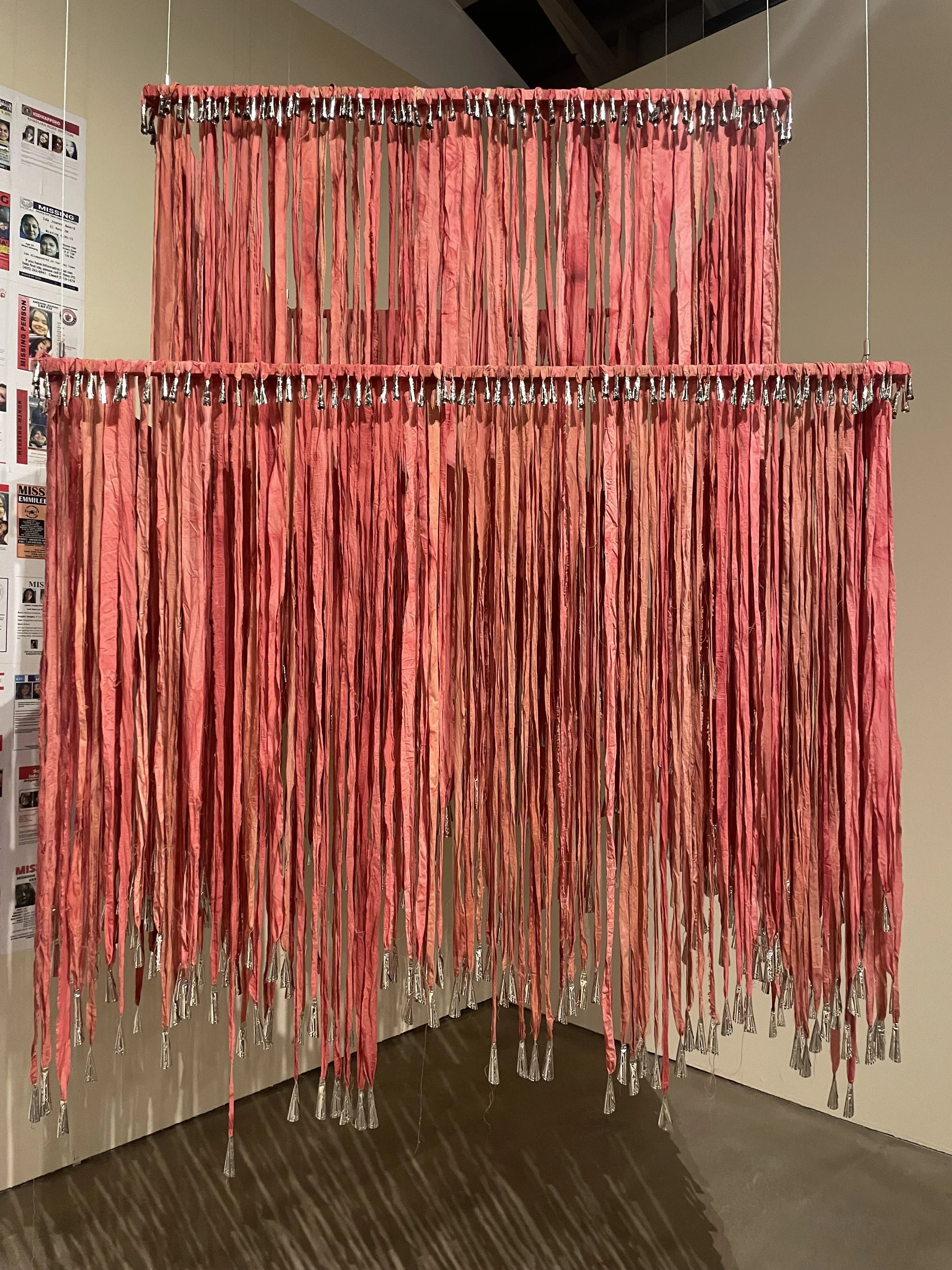 According to a study by the National Institute of Justice, more than 84% of Native American and Alaska Native women have experienced violence in their lifetime, with 56% experiencing sexual violence. The disproportionately high rates of sexual violence against Native women are intricately connected to the crisis of Missing and Murdered Indigenous Women, Girls, and Two-Spirit people (MMIWG2S), as these acts of violence often lead to their disappearance or murder. This installation serves as a stark reminder of this ongoing crisis and the urgent need for justice and healing within Indigenous communities.